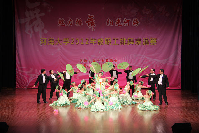 10月12日下午,由校工会组织的“活力排舞,阳光河海”高清av 教职工排舞比赛在江宁校区文体馆隆重举行,全校共有16支学院代表队参赛。高清av 朱宏亮书记和王永芝副书记亲自参加并带领学院热爱舞蹈健身运动的教工组建了由8名男老师和16名女老师组成的24人队伍,邀请专业舞蹈老师指导,历经1个多月的紧张训练,代表高清av 参赛。尽管高手云集,但高清av 代表队女士绿色荷叶落地长裙和男士黑色燕尾长装及精彩出场仍惊艳全场。凭借着整齐的舞姿、别致的道具和独具匠心的队形变换,高清av 的表演屡屡赢得现场观众及评委的阵阵掌声,最终从众多参赛队伍中脱颖而出获得一等奖,为学院争得了荣誉。