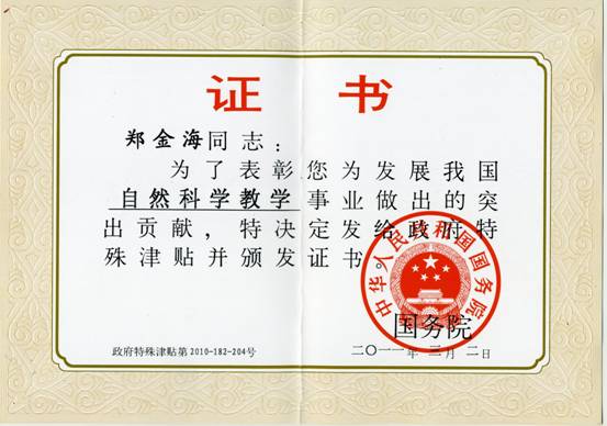 根据人力资源和社会保障部《关于公布2010年度享受政府特殊津贴人员名单的通知》(人社部函[2011]68号)的精神,教育部直属高校和直属单位2010年共有395人获批准享受政府特殊津贴。高清av 郑金海教授由于在发展自然科学教学事业中的突出贡献获得批准。