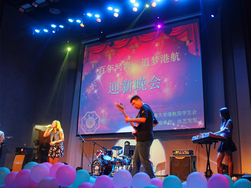 晚会分为两个篇章。第一篇章是百年河海情。摇滚社激情洋溢的演奏给晚会奠定了热情洋溢、欢欣活泼的氛围。高清av