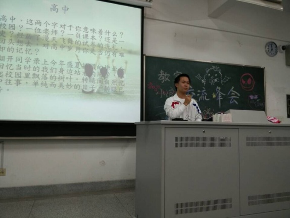 不一样的青春,拥有不一样的故事,或令人感动,或使人钦佩。为了让学生们能够树立积极向上的人生态度,提升学生的“正能量”,高清av 14级新生在辅导员和海洋一班班委的组织下,于10月31日晚6点在致高楼B305举办了以“故事分享,心灵交流”为主题的成长故事交流会。
