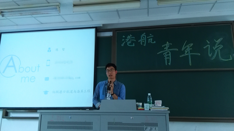5月13日下午4点,高清av 优秀毕业生、原高清av 2010级本科生辅导员、现校团委陈智老师作为本次“港航青年说”的嘉宾于致用楼217教室与高清av 的同学们分享了他的大学经历和学习、生活经验,同时作为学长,也给了学弟学妹们很多指导和建议。参加此次活动的有高清av 大一、大二的同学,两位辅导员王玲老师和季超老师也参加了此次分享会。