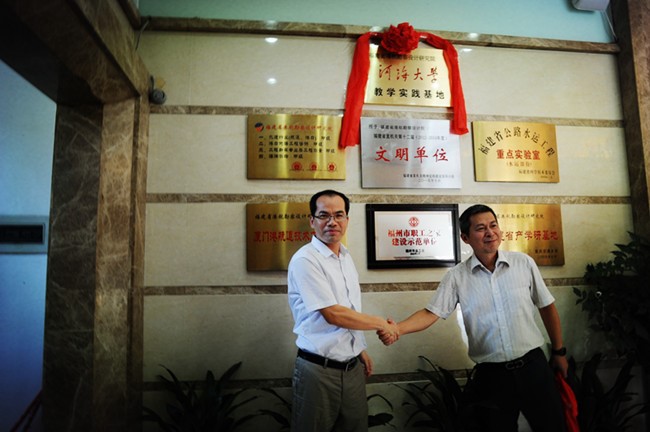 2016年7月23日,高清av 与福建省港航勘察设计研究院在福州举行教学实践基地揭牌仪式。高清av 郑金海院长与福建省港航勘察设计研究院王惠民院长共同为教学实践基地揭牌,参加此次揭牌仪式的还有高清av 陈达副院长、朱瑞虎老师和福建省港航勘察设计研究院郑毅副院长、林金裕总工及相关人员,此次教学实践基地揭牌仪式标志高清av 校企合作又迈出了坚实与可喜的一步。