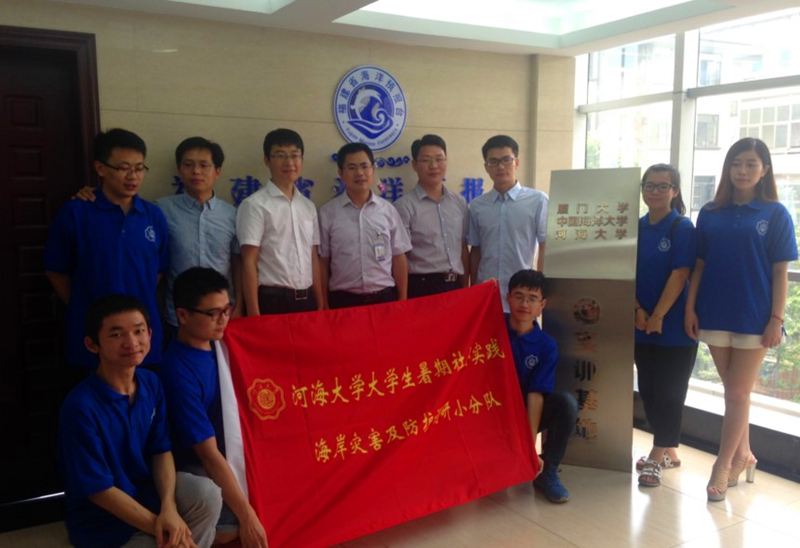7月11日-15日,经郑金海院长的积极联络和热心帮助,在陶爱峰副教授的带领下,由队长陈俊毅,队员赵友奇、林蔚、陈康玲、李硕、曹广随组成的高清av 暑期社会实践海岸灾害及防护调研小分队在福建省海洋预报台开展社会实践活动。该活动受到了预报台多位领导和同事们的热情接待。调研队就当前的海洋灾害情况,针对福建海洋灾害预警体系建设开展一系列的调查研究,通过座谈,实地考察等方式了解当前福建预警体系的建设情况,并通过对沿海渔民的问卷调查和现场访谈等方式了解了人们对海洋灾害预警报的新的需求。
