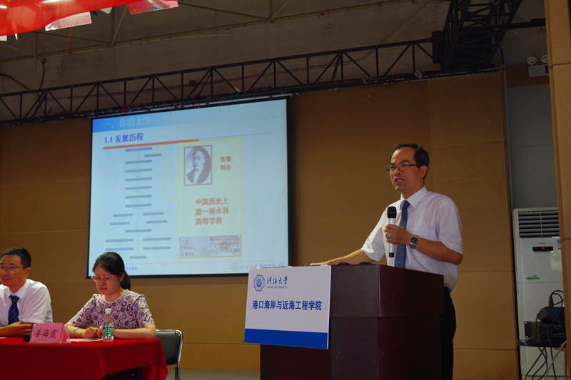 随后郑金海院长详细介绍了高清av 历史概况、发展及办学理念。郑院长强调了“艰苦朴素,实事求是,严格要求,勇于探索”的校训,对港航专业介绍和前景发展进行了深入剖析。他幽默风趣而又富有逻辑性的叙述赢得掌声连连,深刻而富有意味的讲话令人深思。
