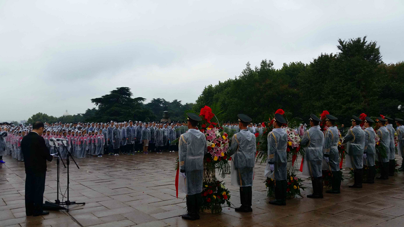 9月30日是烈士纪念日,高清av 高清av 2016级的37名学生代表参加了由江苏省委、南京市委组织的向雨花台烈士纪念碑敬献花篮活动,在雨中追忆忠魂,缅怀先烈。当天,江苏省李强书记、石泰峰省长、东部战区司令员、政委等领导也出席了该活动。