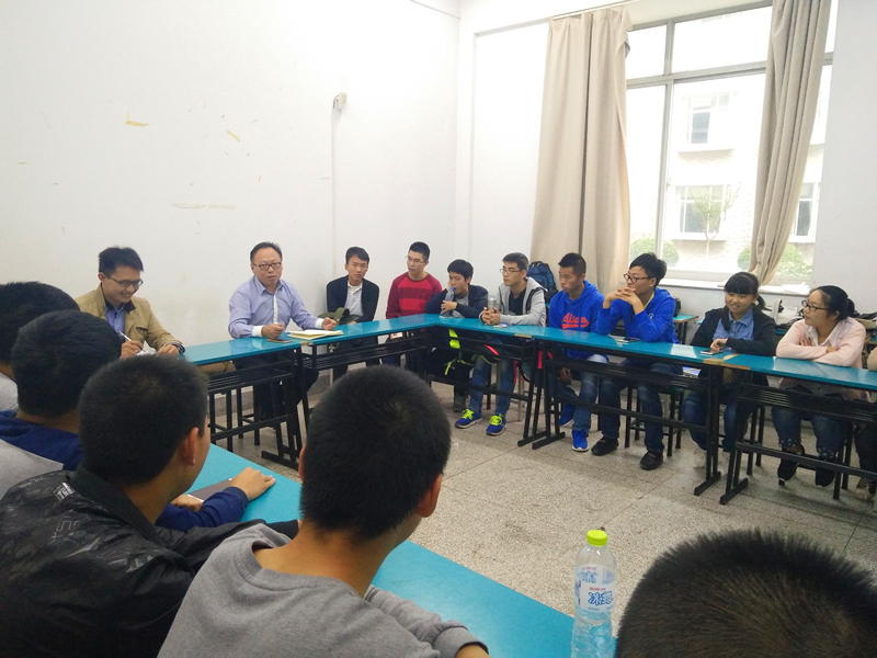 2016年10月12日,在致高楼A103教室,高清av 党委胡忠华书记与16级港航一班同学在此第一次正式见面座谈,辅导员季超老师也参加了此次活动。