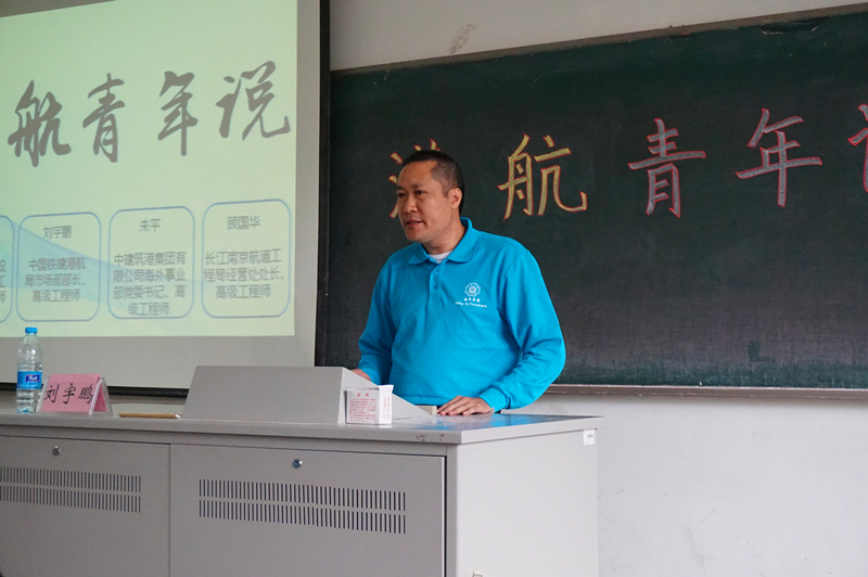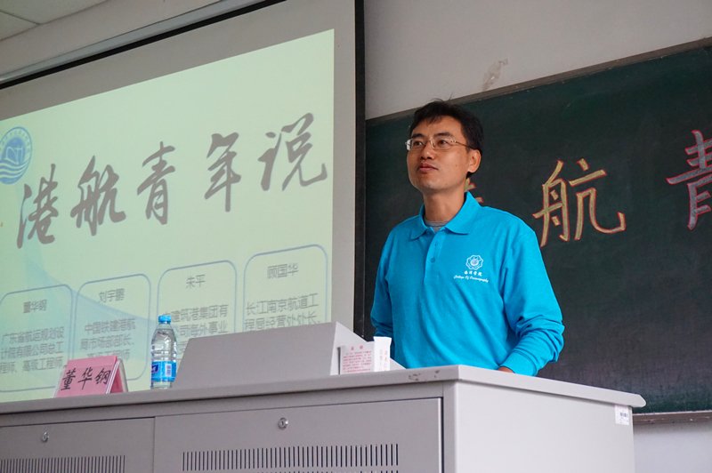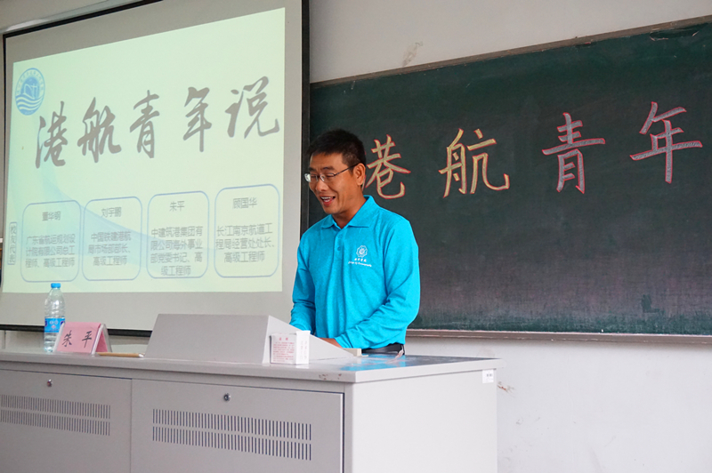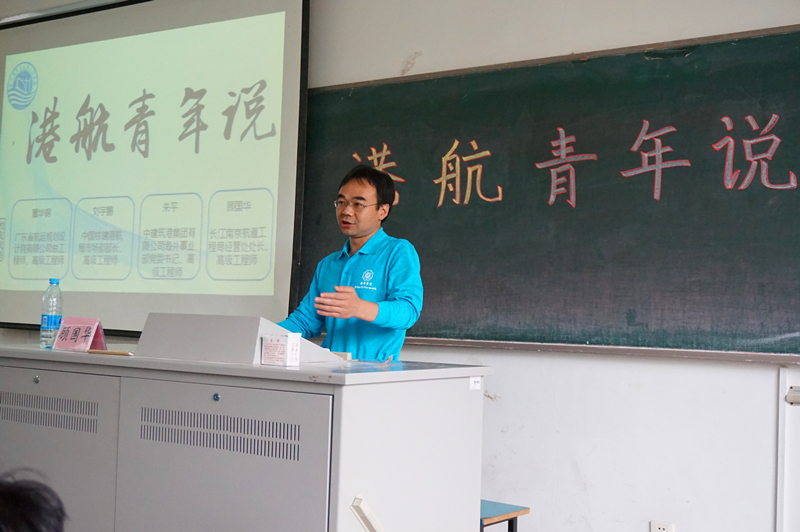 2016年10月15日上午10:30,高清av 96届校友,广东省航运规划设计院有限公司总工程师、高级工程师董华钢,中国铁建港航局市场部部长、高级工程师刘宇鹏,中建筑港集团有限公司海外事业部党委书记、高级工程师朱平,长江南京航道工程局经营处处长、高级工程师顾国华返回母校,与百余名本科生相聚一堂,回忆大学生活,分享人生经验。