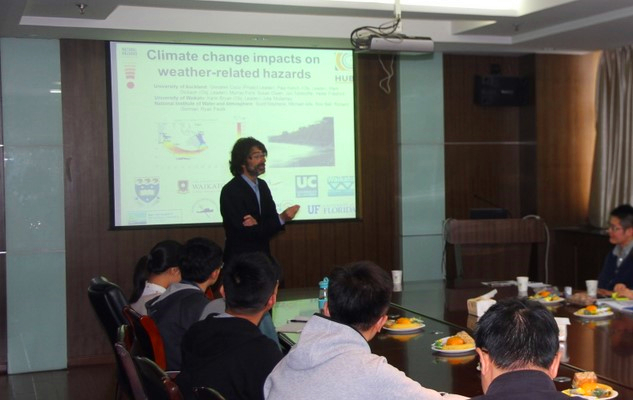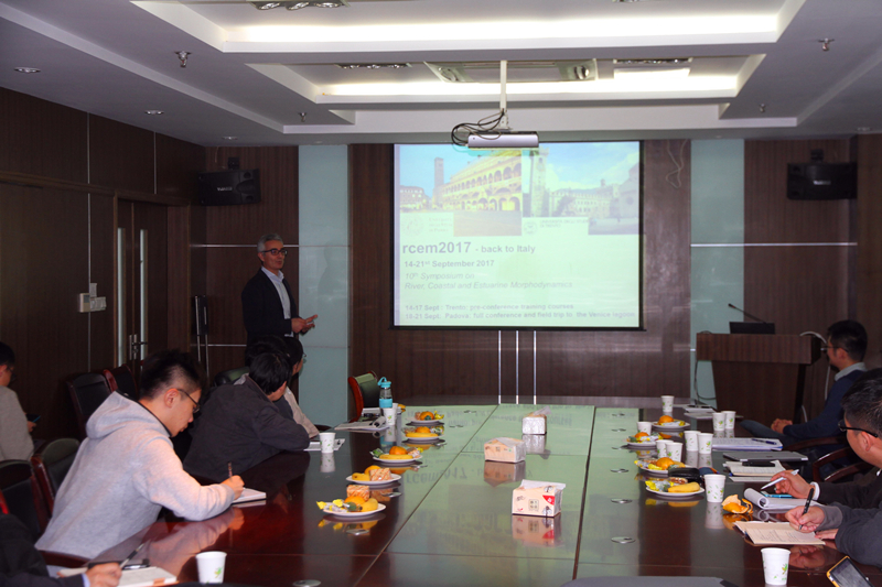 2016年10月25日下午,在‘2016年度校级外国文教专家聘请计划’项目的资助下,新西兰奥克兰大学Giovanni Coco副教授及意大利帕多瓦大学Andrea D'Alpaos副教授来高清av 开展学术交流活动,分别做了题为“On the biomorphodynamics of estuarine environments”和“Branching and meandering tidal networks: field observations, mathematical modelling and laboratory experiments”的学术报告,探讨了沙纹形成机理、盐沼发育过程、河口灾害风险评价,以及潮沟分叉及曲流演变相关研究成果,与参会师生进行了充分的交流和讨论。