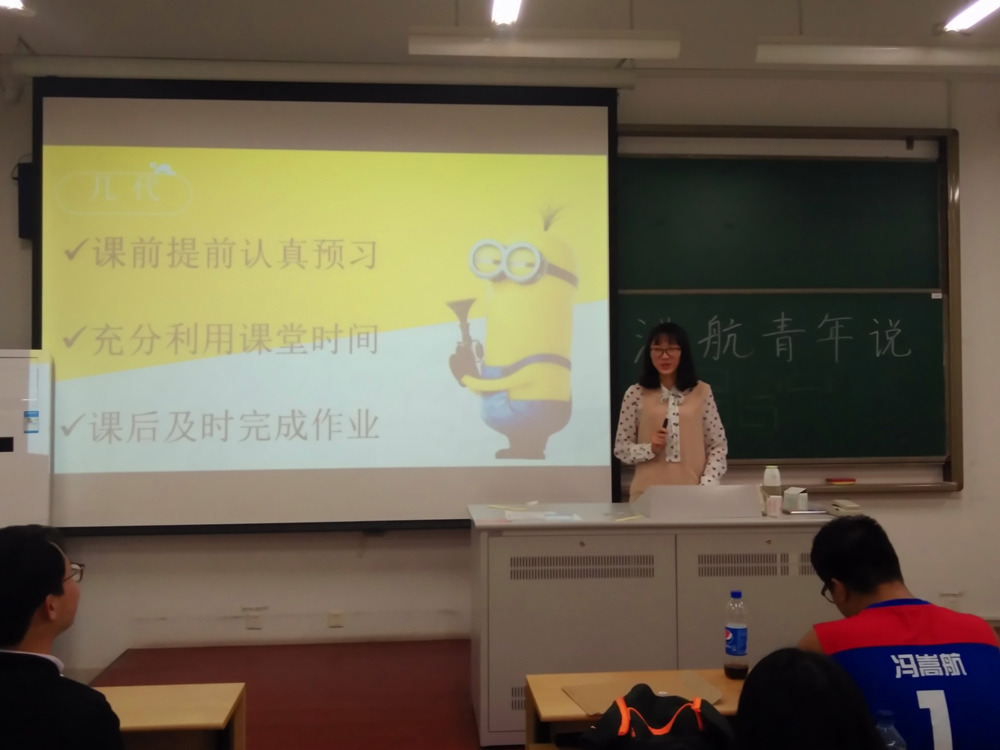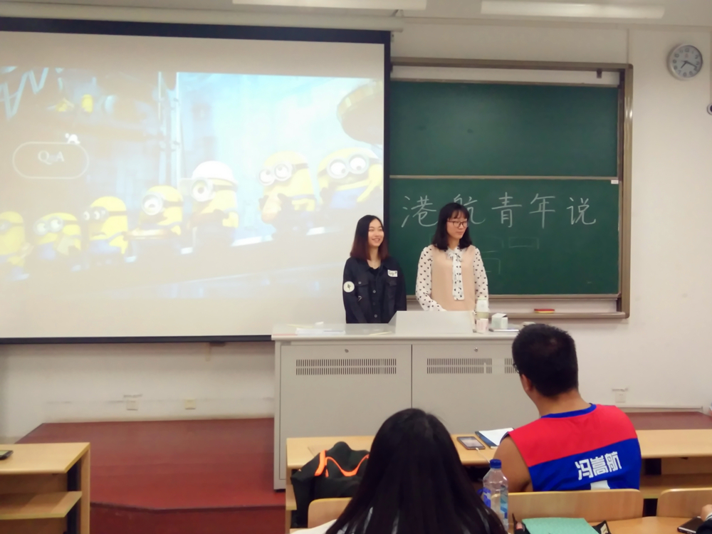 2017年4月16日,港航青年说系列讲座在博学楼B208教室继续开讲,本期讲座邀请到2014级本科生汤子璇和陈雪2位同学,为2016级新生做了本学期课程的学习指导。