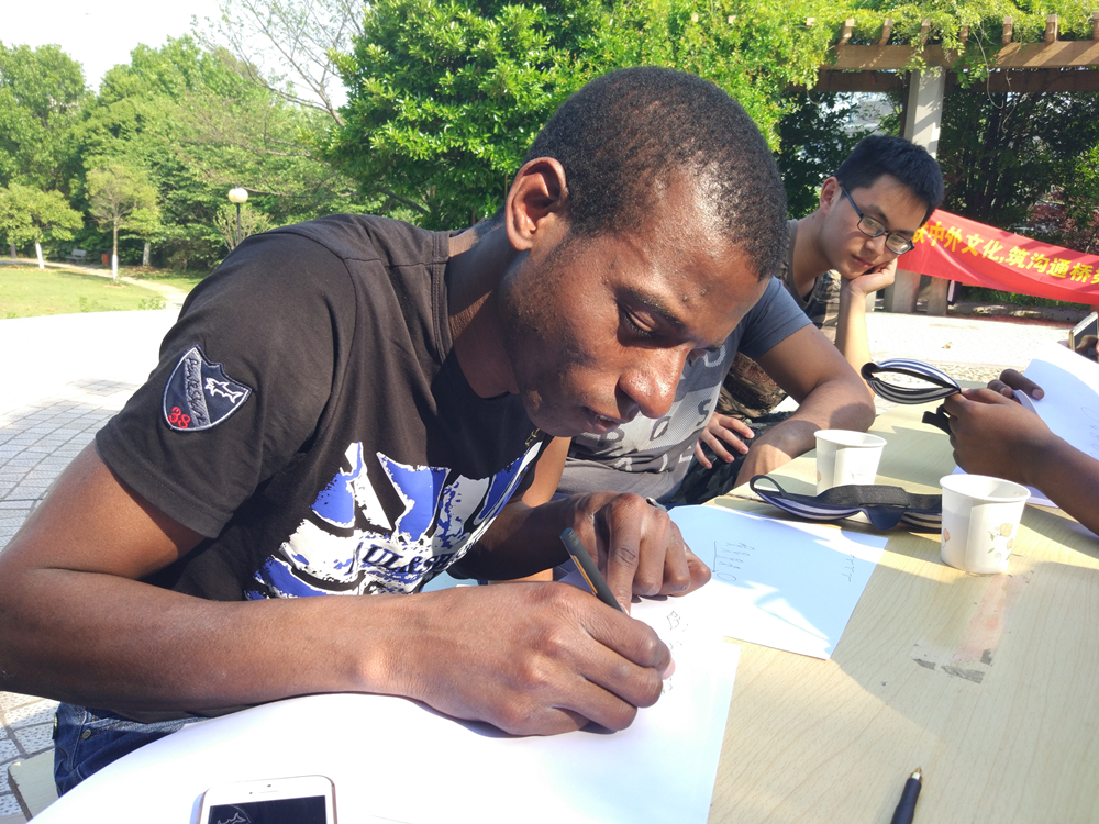 活动开始,同学们围坐在一起,一番简单而又让人印象深刻的自我介绍后,开始了第一个游戏 “数字七”,语言的差异、沟通的困难在同学们的热情和机智中一一化解,后续的夹气球、两人三足、蒙眼指路、观诗作画等各种小游戏,同学们逐渐形成了高度的默契,也建立起了初步的友谊,为接下来的自由交流环节奠定了基础。在自由交流环节中,同学们一边分享家乡的美食,一边畅所欲言,聊风俗习惯、聊学习教育、聊经典名著、聊价值观念,更有多才多艺的留学生同学为大家表演带有异域风情的舞蹈。在活动结束前,同学们一起把自己对其他同学的祝愿写在便签上贴在祝愿墙上,并一起合影留念。