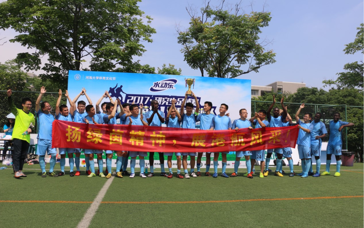 在5月的赛程中,高清av 研究生足球队在小组赛中1:1平水文,0:1负教工以小组第二出线,而后在1/4决赛中3:0大胜土木,在半决赛中常规时间内与地学院战成2:2,并在点球大战中以4:2艰难战胜地学院晋级决赛。在5月25日的决赛中,虽0:1不敌拥有前江苏舜天队长汤波及众多体育老师的教工队,因教工队不计名次,获得了本届高清av 研究生足球赛冠军。