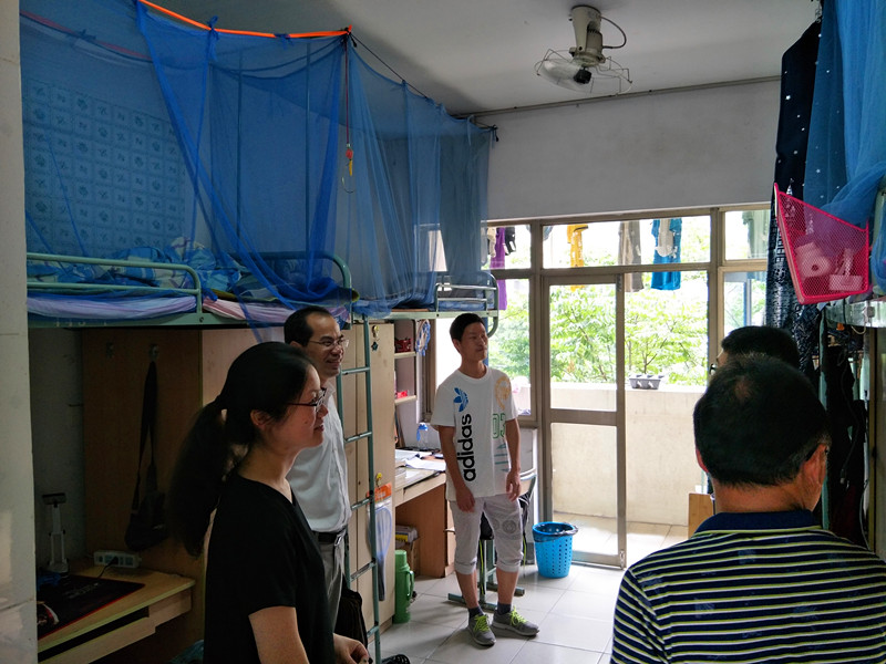 2017年5月31日,学院郑金海院长、党委胡忠华书记、姜海霞副书记在辅导员朱钰老师陪同下前往江南骏园走访高清av 2015级学生宿舍。