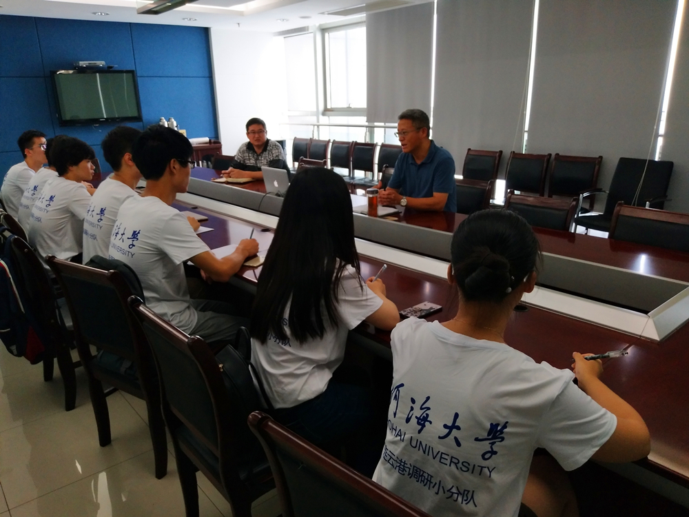 9日,在连云港港口工程设计研究院会议室内,河海的水之子们济济一堂,唠着家常,十分的亲切。在一位水利院的学长主持下,显得十分融洽。队员们详细询问了港口转型、学校生活、就业及与考研有关的问题,当问及到应转型而产生的部门及其职能时,学长们向队员们介绍了岸电公司、财务公司及信息管理部等等。会议结束后,调研团对于自己几天的实践进行了总结交流以及学习反馈。