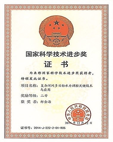 学院获国家科技进步奖证书