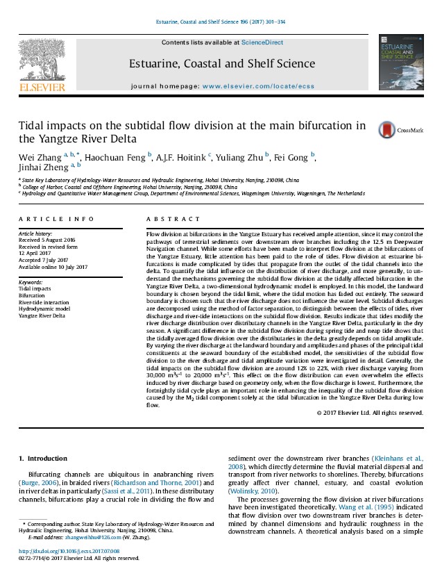 高清av 张蔚教授、王韫玮副研究员、季小梅副教授、张俞老师、徐龑文博士后等师生一行8人参加了此次会议。会上,张蔚教授做了题为“Subtidal Flow Division at Tidal River Bifurcations in the Yangtze River Delta”的报告,王韫玮副研究员做了题为“Coupling Bedform Roughness and Sediment Grain-Size Sorting in Modelling of Tidal Inlet Incision”的报告,徐龑文博士后做了题为“Analytical Solution for Salt Intrusion in Estuary with Multi-River-Source”的报告,季小梅副教授做了题为“Numerical Study of Seasonal Circulation and Variability over the Inner Shelf of the Northern South China Sea”的会议展板。其中,张蔚教授在会议上介绍的潮波运动对汊口分流理论的创新研究成果已于近期在河口海岸权威期刊《Estuarine, Coastal and Shelf Science》(196:301-314)上发表。通过此次会议,与会师生就河口海岸相关科学问题中的研究难点、热点与国内外专家、同行进行了探讨,为今后更深层次的交流与合作创造了机会。