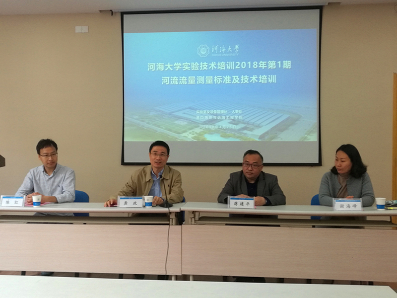 由实验室及设备管理处组织并联合人事处主办,高清av 承办的高清av 实验技术培训班(2018年第1期)“河流流量测量标准及技术培训”于2018年4月25日上午8时在闻天馆102开班。高清av 和来自水文学院、水电学院、环境学院及常州校区的实验技术教师及部分研究生共计40多人参加了本期培训。高清av 院长龚政教授、实验室及设备管理处和人事处相关领导出席开班仪式并发言,就搞好实验技术系列培训给予赞同,并对老师和同学们的参加表示欢迎。