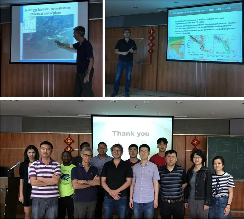 2018年5月17日至5月18日,荷兰代尔夫特理工大学、荷兰三角洲水利科学研究院Han Winterwerp教授与Bas van Maren副教授来高清av 进行学术交流和访问。Han Winterwerp教授作了题为“Sediment-fluid interactions”的学术报告,报告系统介绍了细颗粒泥沙与水流的相互作用以及其在河口海岸地貌演变中的应用价值。Bas van Maren副教授做了题为“Estuarine morphology, turbidity and human interventions”的学术报告,报告围绕欧洲Ems河口地貌在自然营力和人类活动影响下的演变过程和机理,指出疏浚引起的河道加深、泥沙运动、底床降阻、潮汐不对称性之间的反馈机制。Han和Bas与在座师生进行了深入的学术交流。学院周曾老师等多位从事河口海岸泥沙运动及地貌学研究方向的老师以及研究生参加了学术报告。