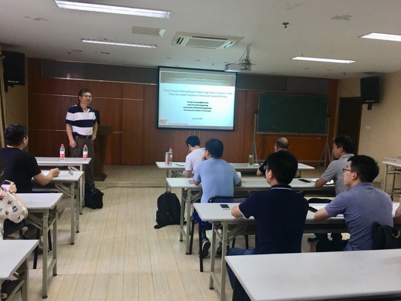 2018年6月29日上午,美国麻省理工学院机械工程系海洋工程研究中心刘玉明教授在高清av 严恺馆702会议室作了题为“Physics-Based Understanding of Violent Slug-Flow Generation in Two-Phase Gas-Liquid Transport in Horizontal Channels/Pipeline”的学术报告。刘教授结合自己研究课题介绍了关于气液两相段塞流的研究进展,提出了气液两相段塞流产生及发展的三个过程及相关动力学机制,并通过数模和物模进行了分析验证,最后介绍了该研课题的未来研究方向与应用。