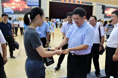 9月1日上午,高清av 党委书记唐洪武、校长徐辉、副校长许峰在各职能部门领导的陪同下,来到学院注册点亲切慰问在场工作的班导师和志愿服务学生。在办理报到注册的过程中,徐辉校长与2018级港航4班学生唐琬婷亲切交谈,唐洪武书记更是亲自向唐婉婷同学发放校园一卡通等物品,并殷切寄语。