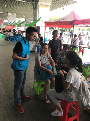 在今年的迎新工作中,高清av 承担了南京火车站南广场的迎新志愿服务工作。高清av 2017级志愿者们身着统一的蓝色志愿者服装,精神饱满,热情洋溢,在南京站迎新接待点迎接新生及家长的到来,耐心地解答他们的问题,并积极引导,协助他们进行行李的搬运和装卸。他们热情的服务态度、高效的办事效率,赢得了新生和家长的肯定。
