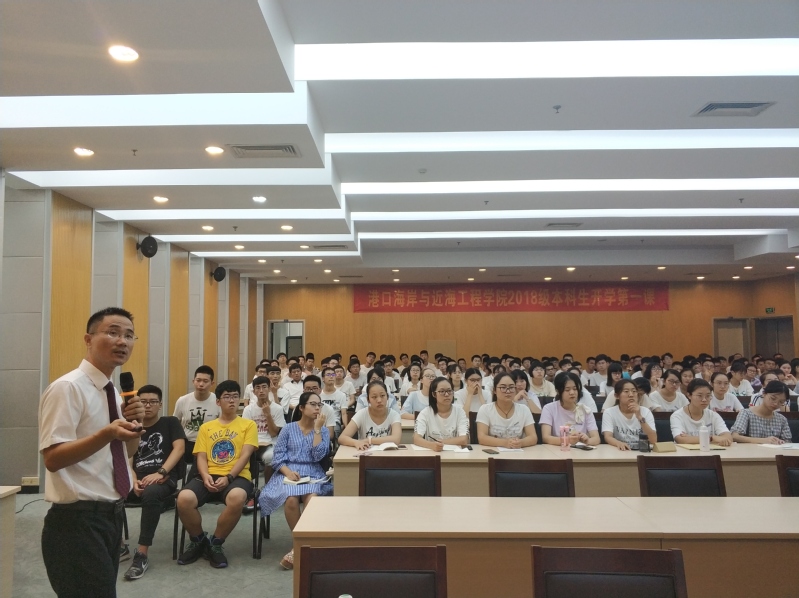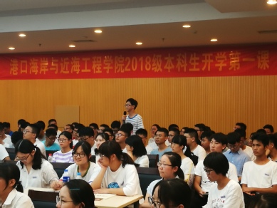 开学典礼后,龚政院长给高清av 2018级全体新生讲授开学第一课。龚院长从学校悠久的历史讲述到学院光辉的历程,结合时代背景和国家战略,谈港航专业的内涵和发展,他用“舟楫之便,向海而兴”八个字强调了港航专业的意义与优势所在,他指出,无论国内还是国外,在很多重点水利工程的设计和建设中都能看到港航人的身影,同学们应以此为傲,也应为此而奋斗努力。同时,龚院长从新生的视角,深入浅出地引导新生结合专业尽早确立目标、规划大学生活,书写自己无悔的青春。新生对开学第一课兴趣浓厚,现场提出很多问题,龚院长一一答疑解惑。