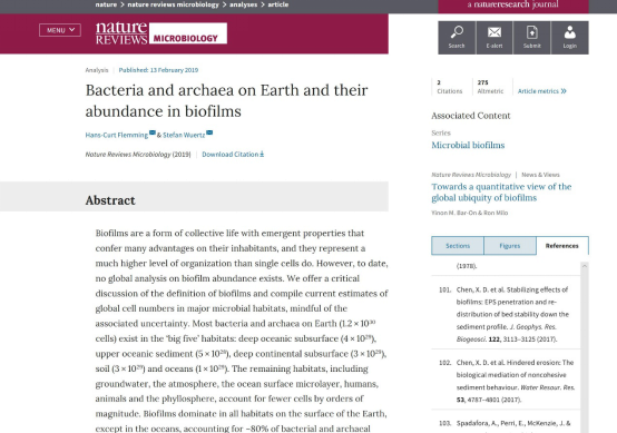 潮滩动力地貌研究团队的两篇学术论文同时被国际顶尖学术期刊Nature旗下子刊Nature Reviews Microbiology(2017-2018最新影响因子31.851)上发表的论文“Bacteria and archaea on Earth and their abundance in biofilms”引用。该综述定量统计、总结了全球范围内菌类生物膜的分布及其在人类、海洋、陆地等生态动力环境中的重要作用。文中高清av