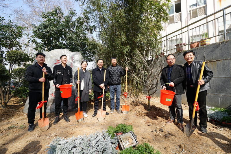 2019年3月12日上午,在严恺馆广场前,学院携手高清av 后勤管理处共同举办了高清av 2019年植树活动暨高清av “望归圃”种植仪式。后勤管理处郭祥林处长、康红强书记、吴青山副处长,高清av 胡忠华书记、姜海霞副书记到场参与了本次活动。参加活动的还有后勤处方玉霞等9位党员教师,学院辅导员季超、顾钰恒、张同鑫老师,本科生党支部党员、学院2019届本科毕业生等。