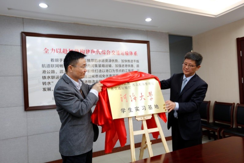 2019年3月29日,高清av 龚政院长、胡忠华书记、教务处胡明副处长等一行5人前往江苏省淮安市与京杭运河江苏省交通运输厅苏北航务管理处为高清av 学生实习基地举行揭牌仪式。龚政院长与苏北航务管理处处长、党委副书记黄岩共同为高清av 学生实习基地揭牌,参加此次揭牌仪式的还有苏北航务管理处金坚良副处长、牛恩斌副处长及其他相关部门负责同志。