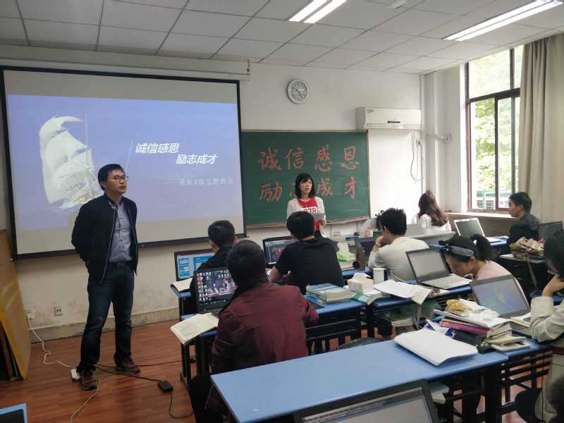2019年4月24日,为了迎接学校学风建设月暨诚信·励志·感恩主题教育月,高清av 2019届各班在毕业设计教室组织开展了主题班会活动。参加本次活动的有学院辅导员季超老师、学院教学秘书刘瑶老师以及高清av 2019届本科毕业生。