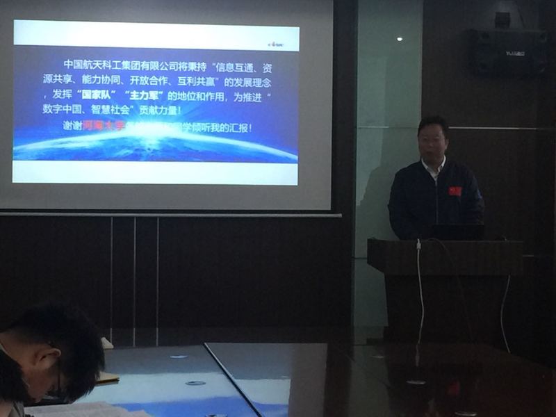 2019年4月29日上午,中国航天科工集团有限公司智慧产业总体部总体室主任陆智俊博士应邀来高清av 访问交流,并做了题为“中国航天特色的智慧产业基础技术发展展望”的学术报告。陆智俊主任是高清av 2004届船舶与海洋工程专业本科毕业生,他结合自己的学习工作经历,重点介绍了中航科工集团在智慧城市、智慧交通、智慧管网(廊)、智慧食药监、智慧农业、智慧水利等领域的产业布局和创新实践。