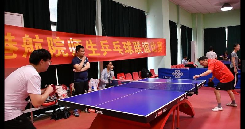 此次比赛分为三个环节,分别为热身赛、个人赛和团体赛。比赛于下午四点正式开始,热身赛中老师同学自由匹配,进行不计分比赛,为后面环节做准备。个人赛采用抽签方式,每位老师匹配一名同学,以三局两胜的方式进行积分赛,共进行3轮。团体赛是教师组与学生组之间的对决,分为单打和双打两种方式,两组队员探讨战术,安排出战顺序,为自己的队伍争取更好的战绩。最终教师队以4:1的战绩取得整场比赛的胜利。正式比赛结束后,师生队伍各自派出实力最强的2位队员,进行了友谊表演赛,可谓是整场比赛的高潮。球速的突然加快,乒乓球难以捉摸的运动轨迹,都让旁观者连连喝彩。