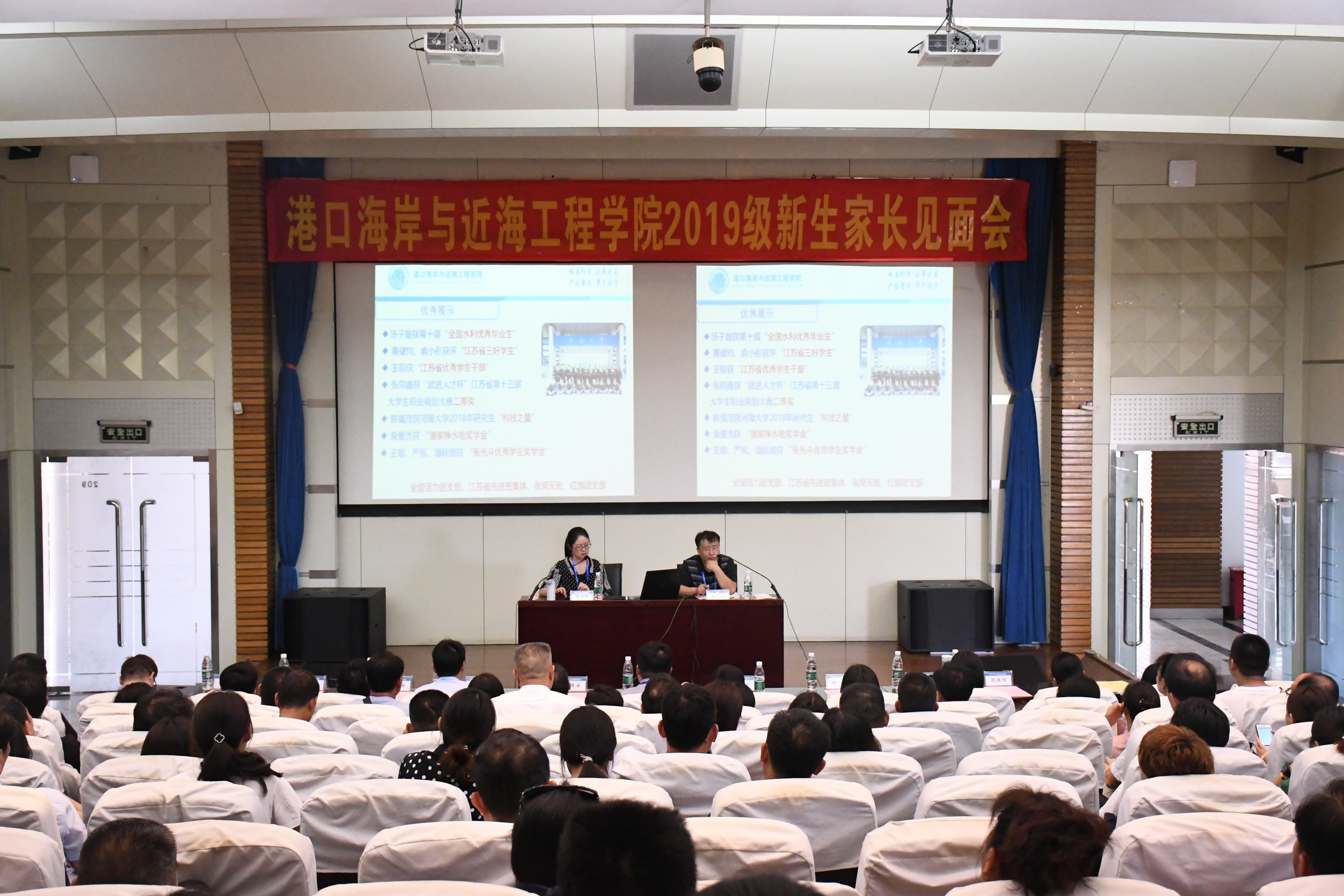 8月24日下午1点半,高清av 2019级新生家长见面会在江宁校区江宁会议中心举行。高清av 副院长张蔚、党委副书记姜海霞、海岸所支部书记陶建峰、2019级各班班导师、本科教学秘书、各年级辅导员出席了此次家长见面会。