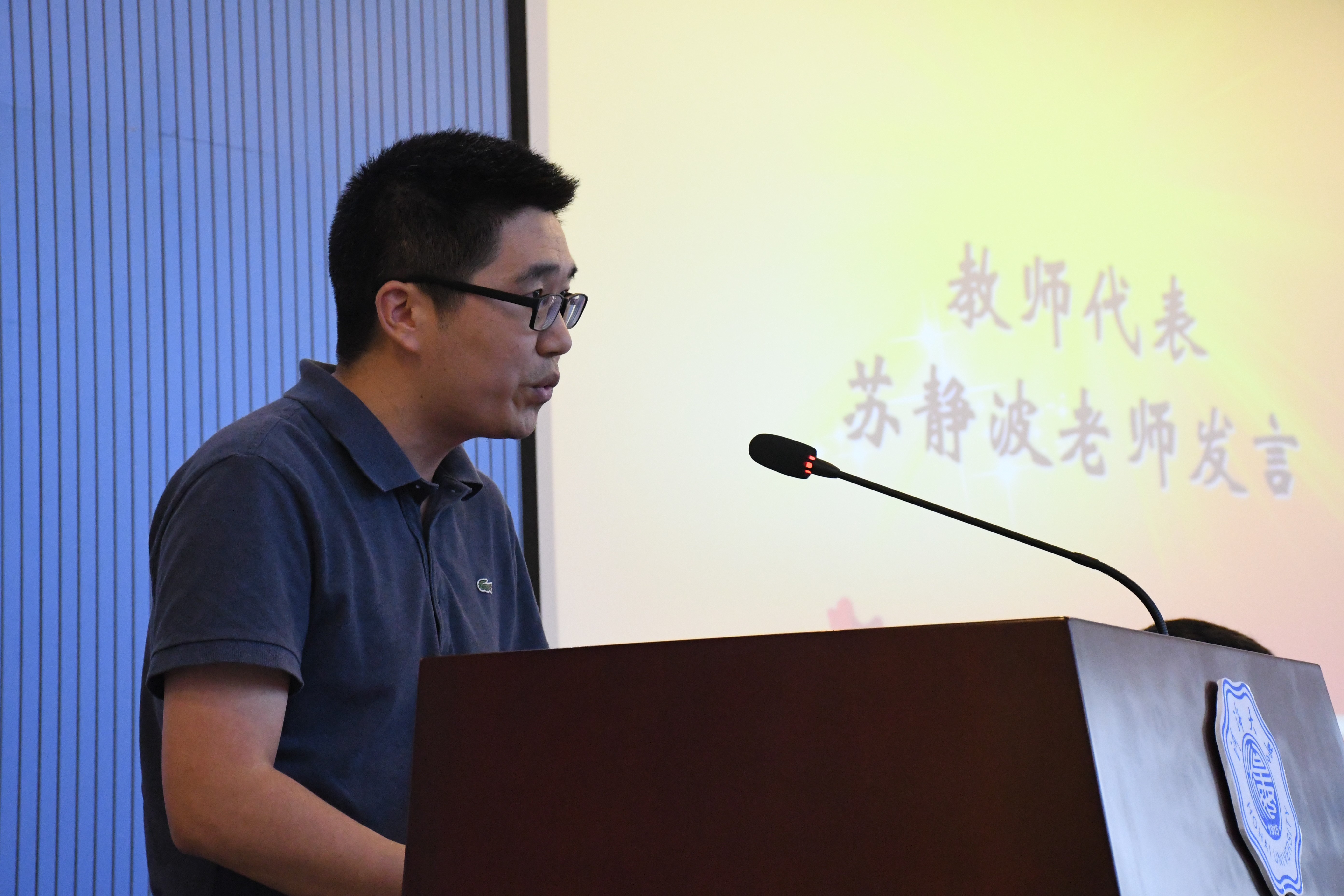 随后,教师代表苏静波老师以校训为引,从适应艰苦朴素的生活、秉承实事求是的态度、坚持严格要求的信条和贯彻勇于探索的精神四个方面向新生解答了大学生活如何渡过这个问题。2019级孔蔚同学代表新生发言,表示新生们将在追梦的旅途中用自己的青春和汗水勾勒出最美的故事画卷。