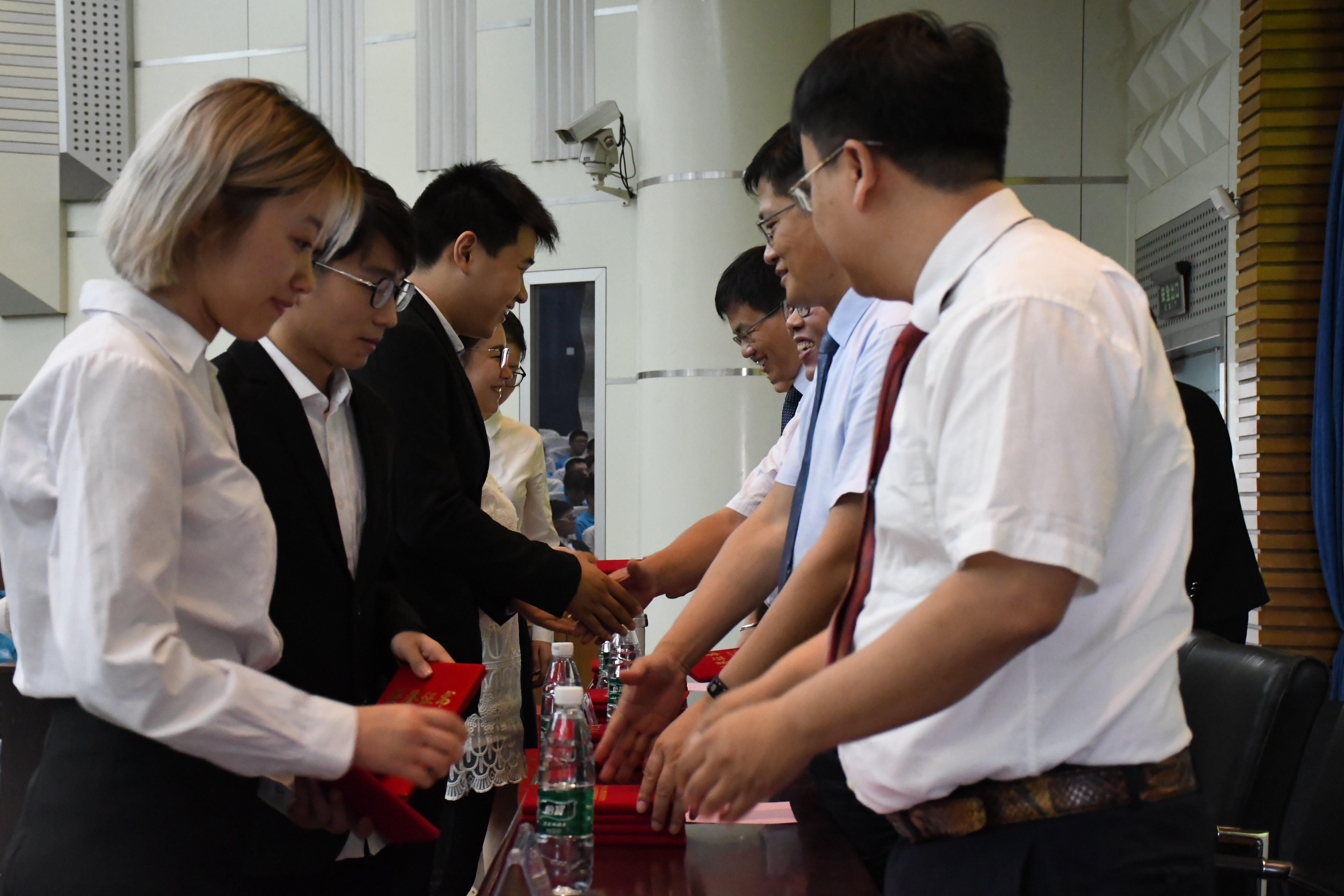 伴随着庄严的国歌声,颁奖典礼正式开始。张蔚副院长宣读了2018—2019学年优秀学生名单,其中包括各类奖学金获得者、省级以上竞赛获奖者及各类荣誉称号获得者。优秀学生代表依次上台领奖,红灿灿的获奖证书背后折射出他们辛勤的努力,为全体新生树立了榜样。