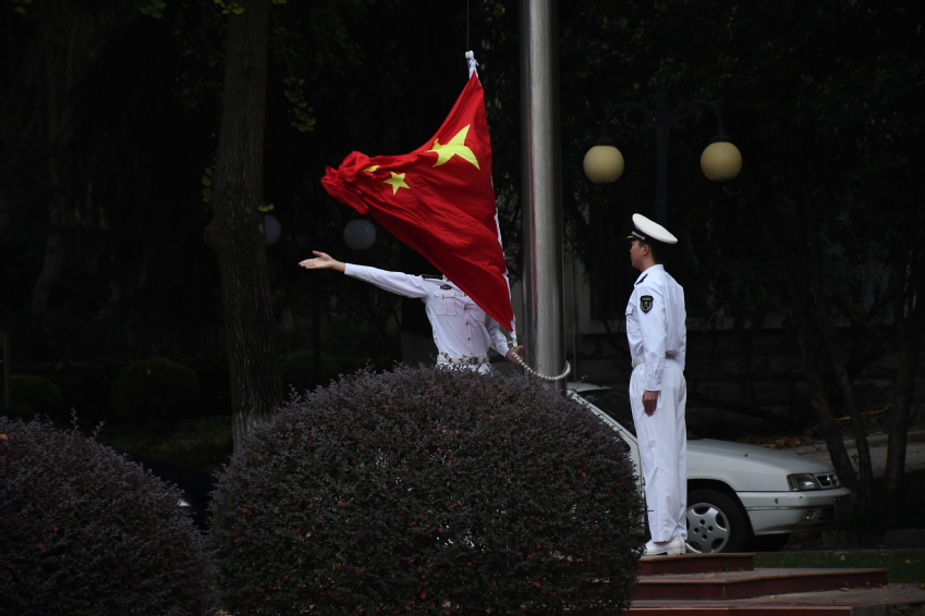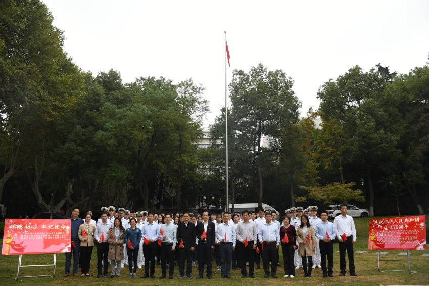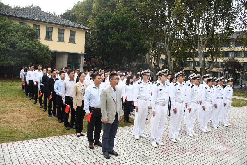 2019年10月14日早上7点20分,高清av 高清av 在本部工程馆前举行“不忘初心、牢记使命”主题升旗仪式。仪式由学院党委姜海霞副书记主持,参加本次升旗仪式的有学院领导班子成员、海工所全体教师党员、全体教工党支部书记、教师党员代表、学生党员代表以及2016级全体国防生。