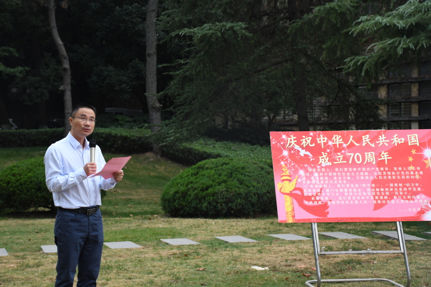 升旗仪式分为四个部分。第一部分,全体参会者在国旗前排列整齐,伴随着《义勇军进行曲》的响起,参会者集体行注目礼,全场弥漫着庄严肃穆的气息。第二部分,学生代表宋俞良、高志伟和姜新怡带来 “铭初心 担使命”主题诗朗诵,讲述严恺先生治理天津新港的故事,带领在场师生回顾严恺先生治水为国的经历。第三部分,学院龚政院长以诗朗诵作引,以“不忘初心、牢记使命”为主题,宣扬水利人结合自身专业,不畏艰苦,为国家水利发展献身的爱国报国情怀,为全院代表上一堂生动的党课。第四部分,2019级研究生党员代表张同鑫进行“奋斗的我,最美的国”国旗下演讲,呼吁同学们要把爱国之情化为报国之行,用青春之我奋斗出青春之中国、青春之民族。