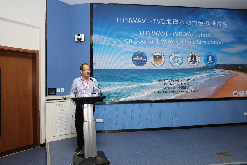 10月18日-20日,第三届FUNWAVE-TVD海岸水动力模拟研讨会(FUNWAVE-TVD Workshop on Coastal Hydrodynamic Simulation)在高清av 顺利召开。会议邀请《Journal of Fluid Mechanics》副主编James T. Kirby教授、特拉华大学史峰岩教授、罗德岛大学Stephanie Grilli教授、Annette Grilli教授、江苏科技大学高俊亮副教授、自然资源部第三海洋研究所朱君博士、高清av 王岗副教授,围绕海岸波浪传播变形、水动力过程、港湾共振、海啸和多尺度淹水过程模拟做了10场学术报告,并进行了6场FUNWAVE-TVD现场教学。来自清华大学、上海交通大学、浙江大学、大连理工大学、天津大学、中国海洋大学、高清av 等16家高校和科研院所的师生共70余人参加了本次研讨会。研讨会由高清av 副校长、海岸灾害及防护教育部重点实验室主任郑金海教授致辞,张继生教授主持。