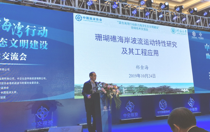 2019年10月24日至25日, 中国“蓝色海湾行动助力海洋生态文明建设”现场技术交流会在广东汕头顺利召开。高清av 郑金海教授、诸裕良教授、张弛教授、农业工程学院陈立华副教授参加了本次会议。郑金海教授作为特邀嘉宾作了“珊瑚礁海岸波流运动特性研究及其工程应用”的报告,诸裕良教授作了“航道疏浚沙土的资源化利用研究”的报告、张弛教授作了“日照人工沙滩现场观测”的报告,陈立华副教授作了“海岸带植被建设的工程生物技术研究”的报告,与来自国家疏浚行业、海岸工程、海洋科学等领域专家学者进行了深入交流和探讨。