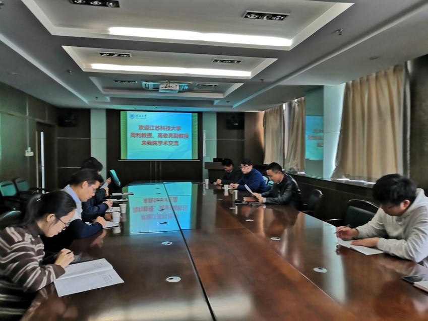 2019年11月12日上午,江苏科技大学周利教授、高俊亮副教授来高清av 进行学术交流。周利教授做了“极地船舶与海洋工程冰载荷预报”学术报告,高俊亮副教授做了“基于Boussinesq模型诱发的港湾共振数值研究”学术报告。龚政院长主持本次报告会。