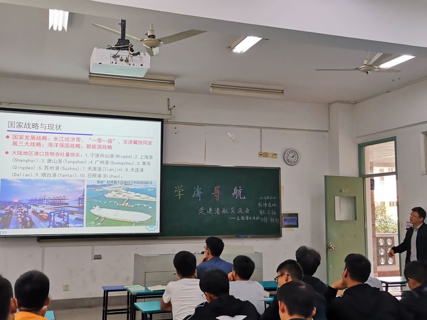 10月21日下午2点,2019级港航五班在致高楼A213教室举办“港航专业前景交流”主题班会。港航五班班导师侯利军老师及港航五班全体同学参与班会。