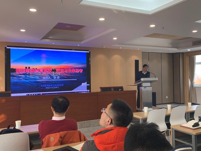 12月9日,来自国家自然资源部第三海洋研究所所长蔡锋研究员作了题为“我国海滩修复现状、效应与未来发展思考”的学术报告。报告中,蔡所长首先介绍了我国海岸遭遇严重侵蚀的现状,强调了海滩修复的必要性,讲述了我国海滩修复的现状。蔡所长以多个实际工程为例,具体讲解了不同类型的海滩养护技术,并且,从防护、经济、生态、社会影响四个方面分析了海滩修复带来的效应。最后,蔡所长还进一步说明了海滩修复的未来发展方向和相关思考。
