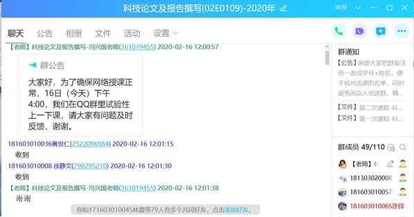 信息技术与现代教育的深度融合是教与学的改革创新。充分利用线上即时教学优势,港航师生实现了五湖四海同时连线,因疫情相隔千里的远程教学,在线上课堂上又热闹了起来。主讲《基础工程》的庄宁老师和黄挺老师在线上直播平台实现了配合默契的“一同”授课;主讲《科技论文与研究报告撰写》的冯兴国老师通过QQ直播带领着来自高清av 、水电院、农工院等多个学院以及与南京水利科学研究院联合培养的共90余名研究生学习撰写科技论文与凝练科研题目的技能;主讲《水下机器人》的徐鹏飞老师借助腾讯会议软件让每个学生都参与线上讨论等互动环节,及时掌握教学效果;主讲《工程商务》的雷智鹢老师利用线上优势,采用了分片教学的模式进行单独授课、单独讨论和单独答疑。线上课堂形式多样,以即时影音、图文等方式对学生进行全方位的引导与解惑,不仅活跃课堂氛围,还可调动学生的学习积极性。
