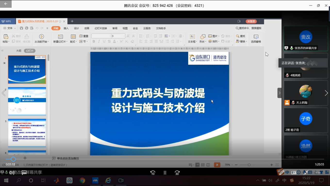 根据教育部、省教育厅关于新冠肺炎疫情防控工作要求,高清av 疫情防控期间将2020届本科毕业实习从线下实习调整为线上实习。港口海岸近海工程学院根据学校总体布置,结合学院自身特点,学院制定出详细的线上毕业实习方案。邀请行业内具有丰富工程实践经验的专家,从港口工程、海岸工程和航道工程的规划、设计和施工为本科毕业生开展了为期4天共八场的讲座(表1)。