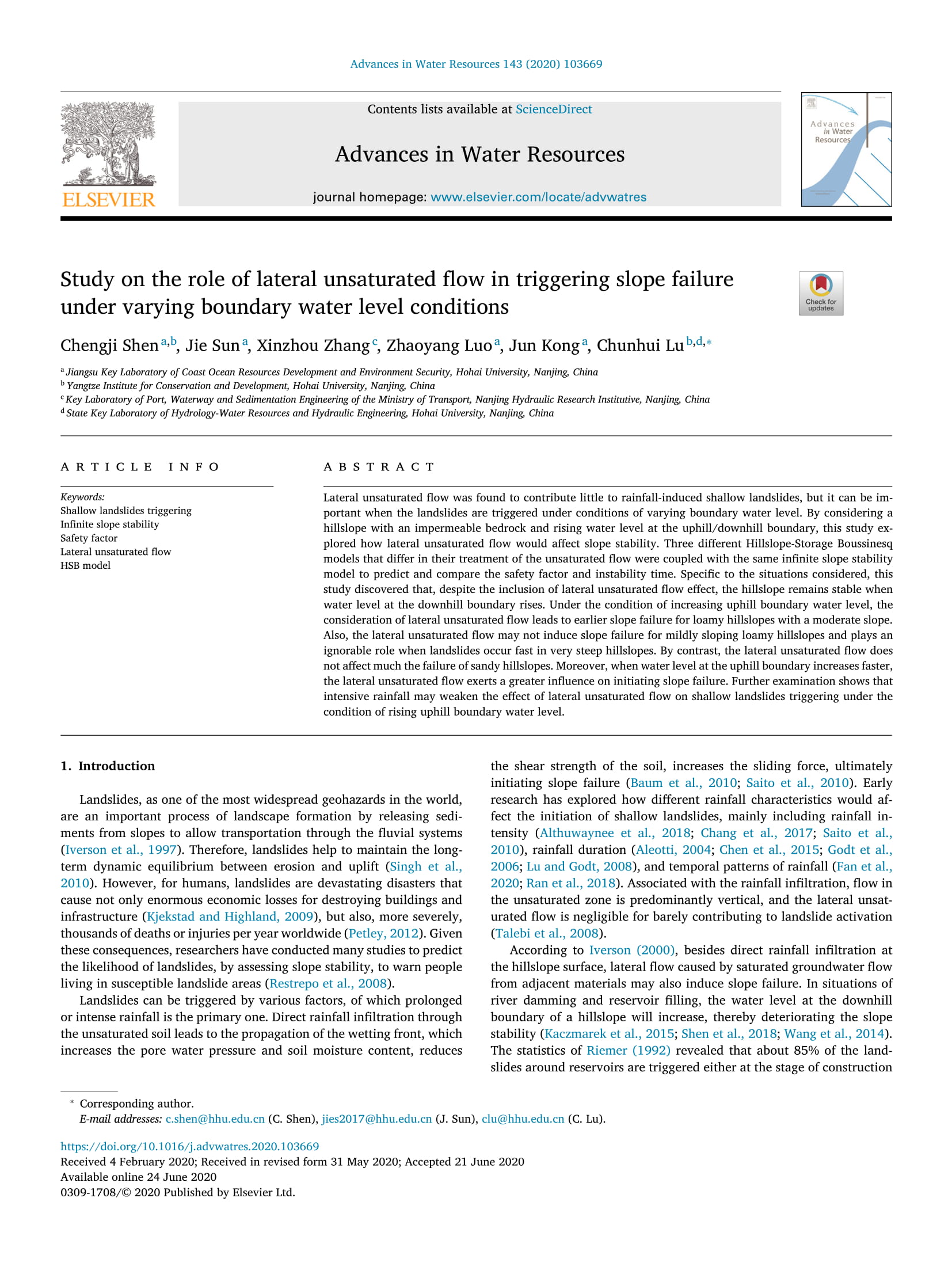 近日,高清av 海防所教师沈城吉博士、孔俊教授等在国际权威期刊《Advances in Water Resources》上发表了题为“Study on the role of lateral unsaturated flow in triggering slope failure under varying boundary water level conditions”的学术论文。