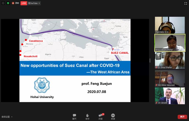 2020年7月8日,高清av 封学军教授应中国驻埃及大使馆和阿盟(阿拉伯国家联盟)科技海运学院邀请,参加阿盟“应对新型冠状肺炎疫情——港城一体化”国际视频研讨会并作主题发言。中国驻亚历山大总领事赵丽莹、阿盟科技海运学院校长伊斯梅尔·阿卜杜勒加法尔、阿盟经济事务助理秘书长卡麦勒·阿里、阿盟交通旅游局局长蒂娜·祖海里、埃及塞得港省省长阿迪勒·阿德班、亚历山大省副省长杰克琳,以及来自西班牙瓦伦西亚港务局、西班牙港口物流咨询公司(PLA)等多位领导和学者出席了本次研讨会。