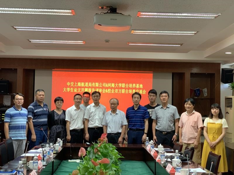 2020年8月17日下午,高清av 龚政院长、张长宽教授、邵宇阳副教授三位校内导师赴中交上海航道局参加2019级全日制专业学位硕士研究生开题报告会和校企双方联合培养交流会。上海航道局组织部和人才资源部部长程绪红、设计研究院党委书记副总经理张群、设计研究院副总经理季岚教授级高工、上海航道局人才开发经理杨世俊、设计研究院港航所执行所长赵良奎教授级高工、人力资源部副经理刘兆庆、应铭教授级高工、人力资源部招聘主管庞叶利等8位基地单位领导和导师参加了会议。开题报告会由评议组组长张长宽教授主持。