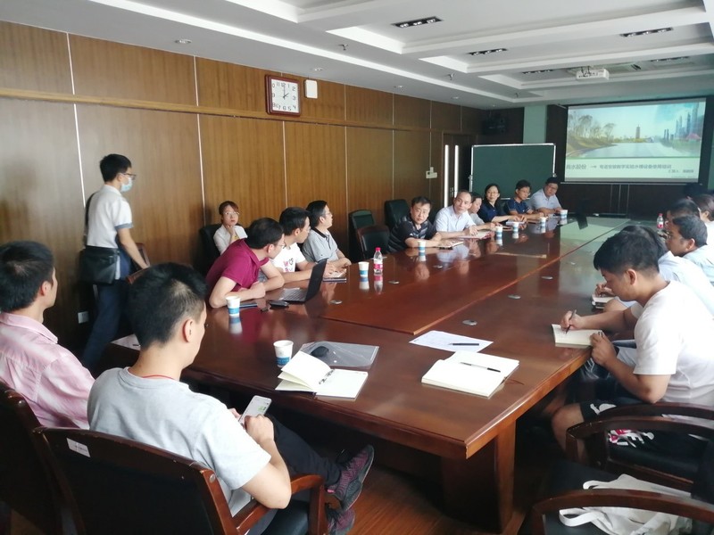 2020年9月16日,高清av 实验中心组织举办了弯道变坡教学实验水槽应用培训,培训会议由张蔚副院长主持。本次培训采用室内讲解、现场演示及问题解答相结合的形式,培训内容主要包括:水槽主要构成与功能、水槽流量自动控制系统、水槽维护与保养、常用实验类型及仪器设备布置等。参加培训的人员有北京尚水股份有限公司(承建方)项目组人员和高清av 师生,共30余名。