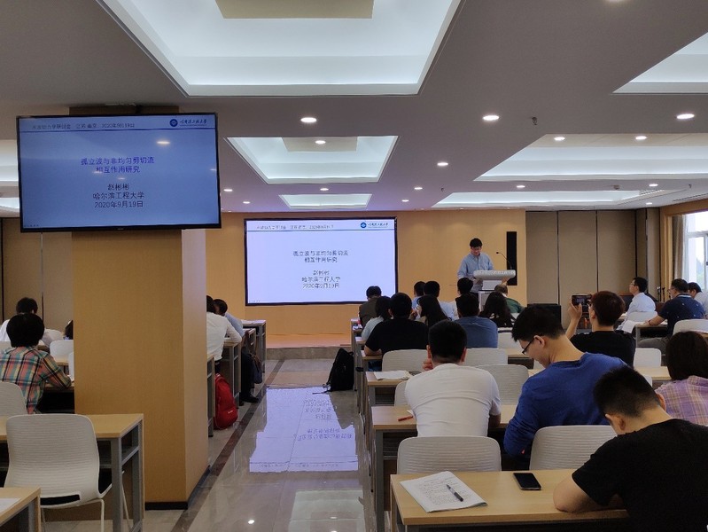 2020年9月18-20日,由高清av 海岸灾害及防护教育部重点实验室(以下简称实验室)主办,江苏省海洋湖沼学会及中国力学学会流体力学专业委员会水动力学专业组协办的水波动力学研讨会在高清av 严恺馆702顺利举办。实验室邀请了哈尔滨工程大学、上海交通大学、上海海事大学、中山大学、华中科技大学和长沙理工大学的10位教师和3位研究生前来进行交流。实验室副主任陶爱峰教授主持了会议,徐福敏、张弛、王岗、连宇顺、隋倜倜、赵红军、张俞、熊焱、范骏等老师以及高清av 的学生们参加了本次研讨会。