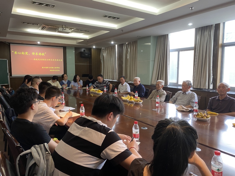 9月23日下午,高清av “齐心向党,情系港航”——老教授与新生党员座谈会在严恺馆502举行。座谈会邀请到葛明达、洪广文、鲁子爱、舒红缨、唐耿星、徐金环、张东生七位老教授与2020级研究生新生党员进行交流,学院党委书记胡忠华主持座谈会,党委副书记沈国军出席。
