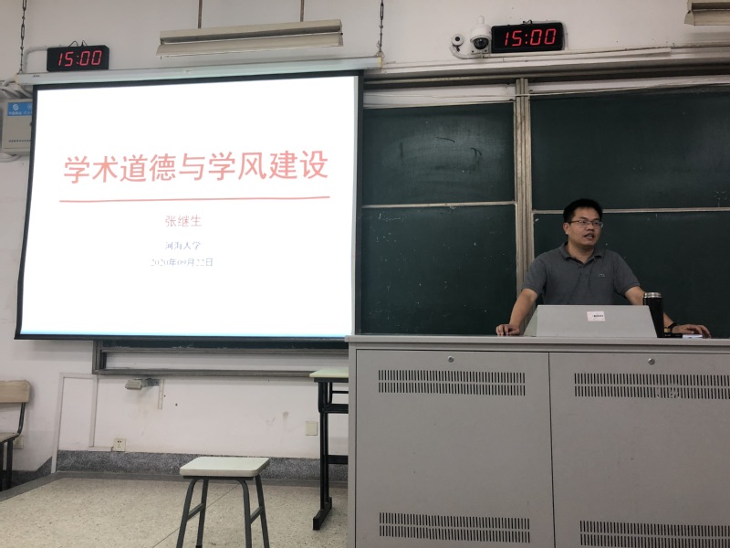 2020年9月22日,高清av 邀请张继生院长为2020级研究生新生做关于学术道德与学风建设的讲座。讲座中,张院长首先着重阐明科学研究的目的,并鼓励同学们作为新时代的大学生,我们要肩负起国之重任,努力学习科学知识,培养创新精神,缩小我国与发达国家前沿科技之间的差距。因此在选择研究课题时,要紧扣国家的发展需求,在实现个人价值的同时为国家科技进步添砖加瓦。随后,张院长就科学研究中的注意事项进行讲解,并举了诸多典型的学术不端案例与同学们分享,提醒同学们在今后的科研工作中养成诚实、严谨的学风,杜绝弄虚作假的行为。